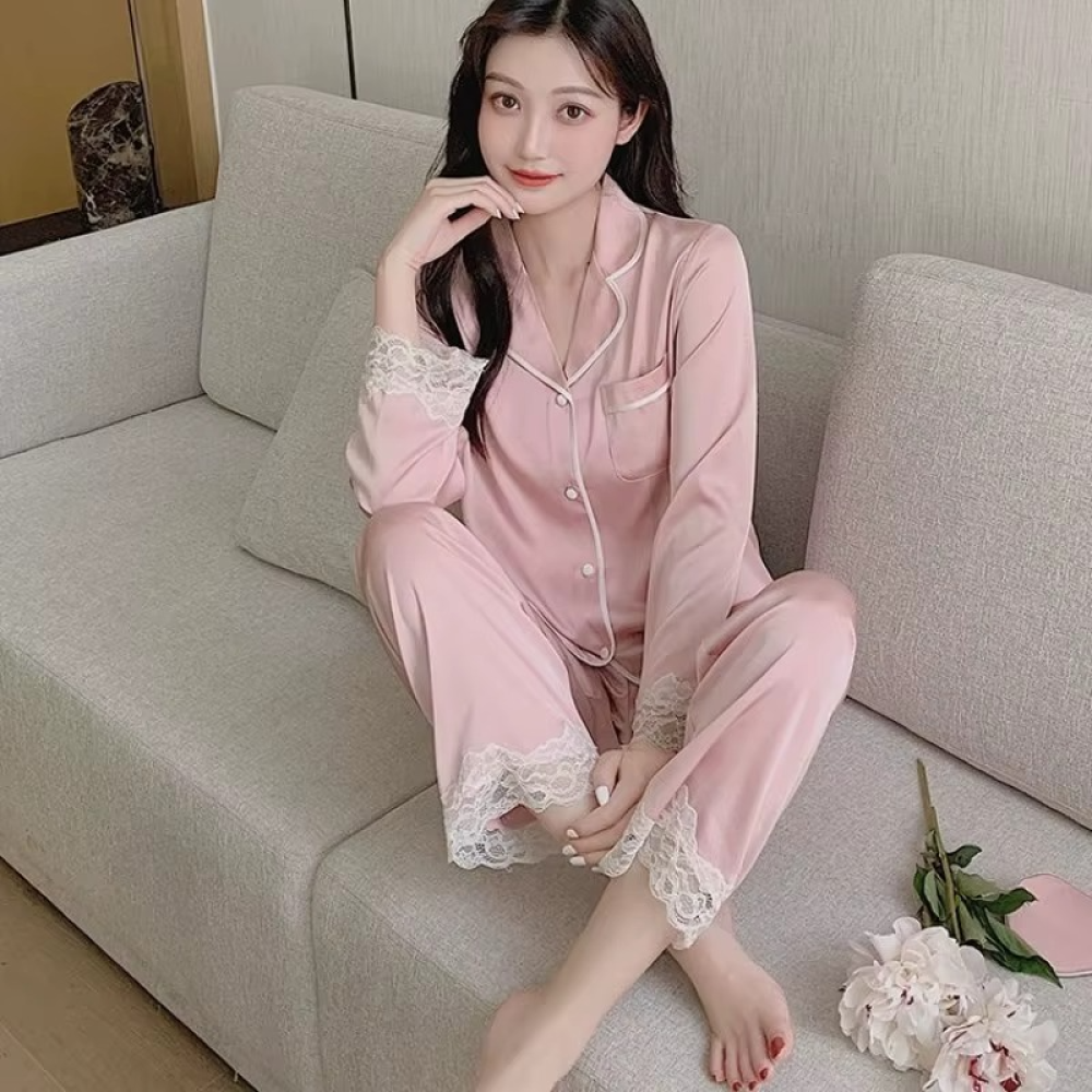 • بيجامات حريمي حرير مقاومة للتجعد وسهلة الغسل وتحافظ على ملمسها الناعم