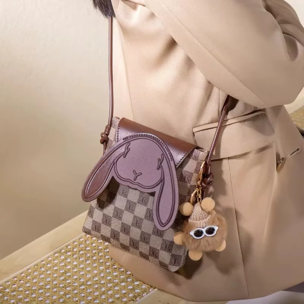 تألقي بإطلالة راقية مع حقيبة صغيرة جلد مصنوعة من جلد البقر الأصلي بتصميم عصري يجمع بين الأناقة والعملية. تتميز بنقشة مربعة أنيقة وتفاصيل فريدة مع تعليقة أرنب لطيفة تضيف لمسة جاذبية.